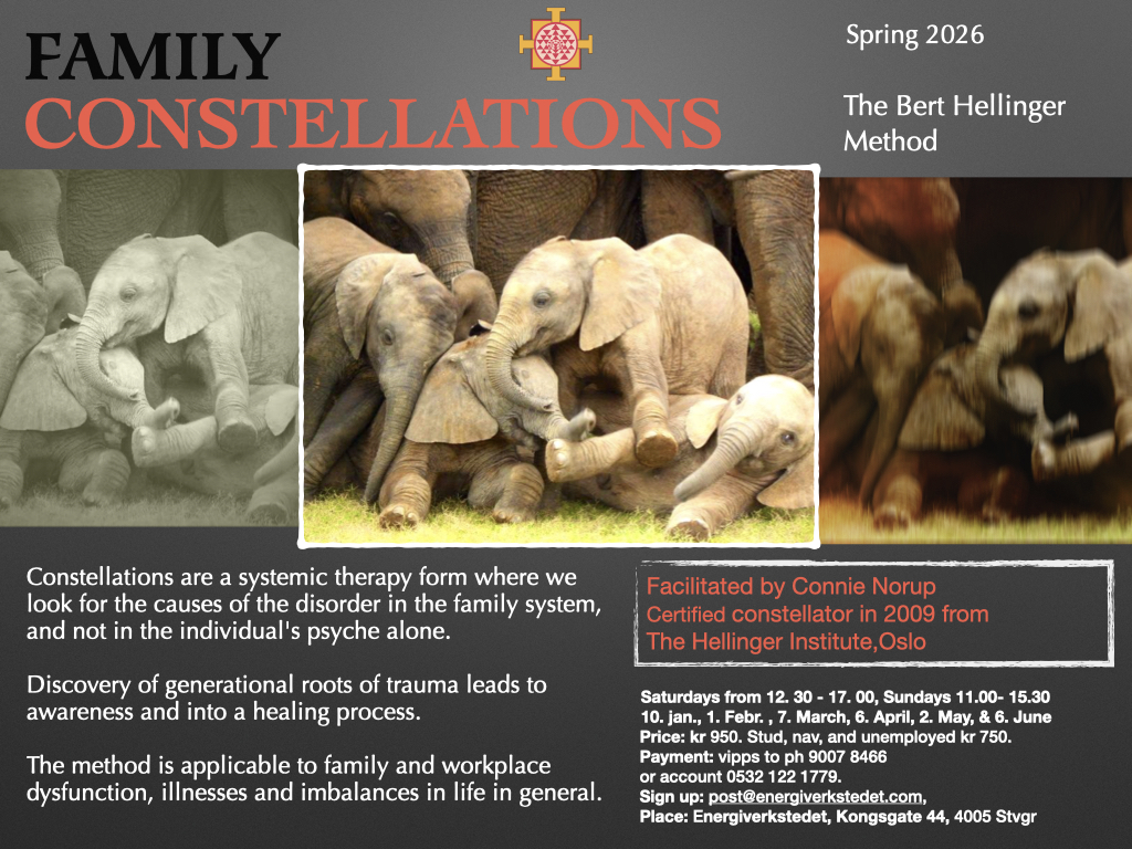 Sertifisert konstellatør fra Hellinger Instituttet i Oslo.